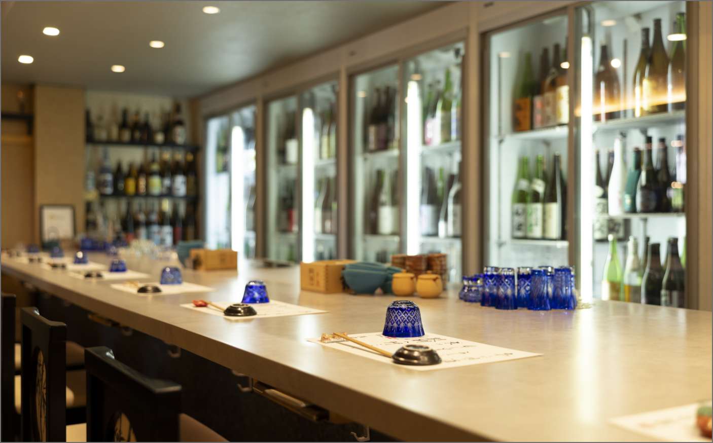 銘酒とじっくり向き合える落ち着いたカウンター席に加え、洗練されたテーブル席をご用意。