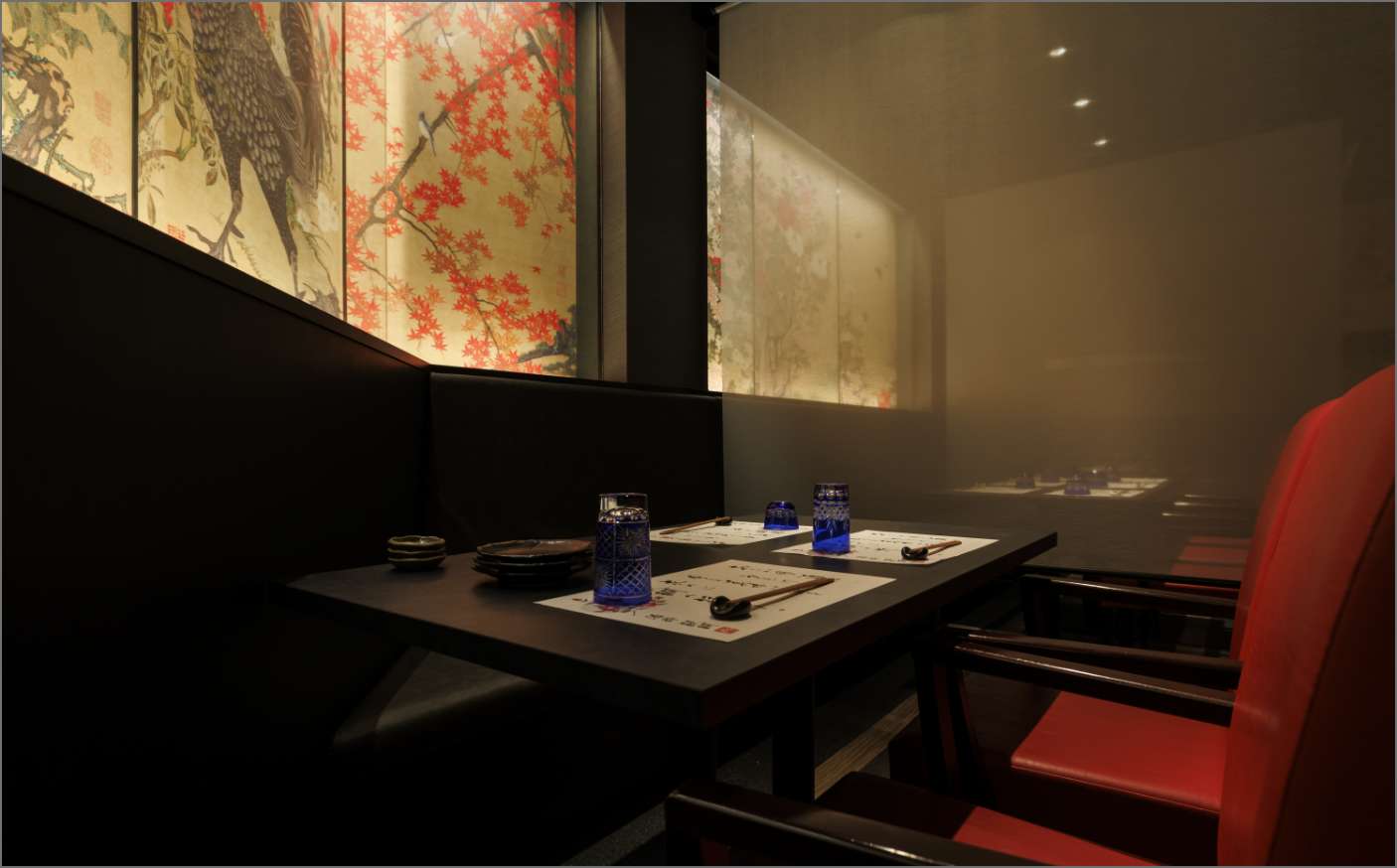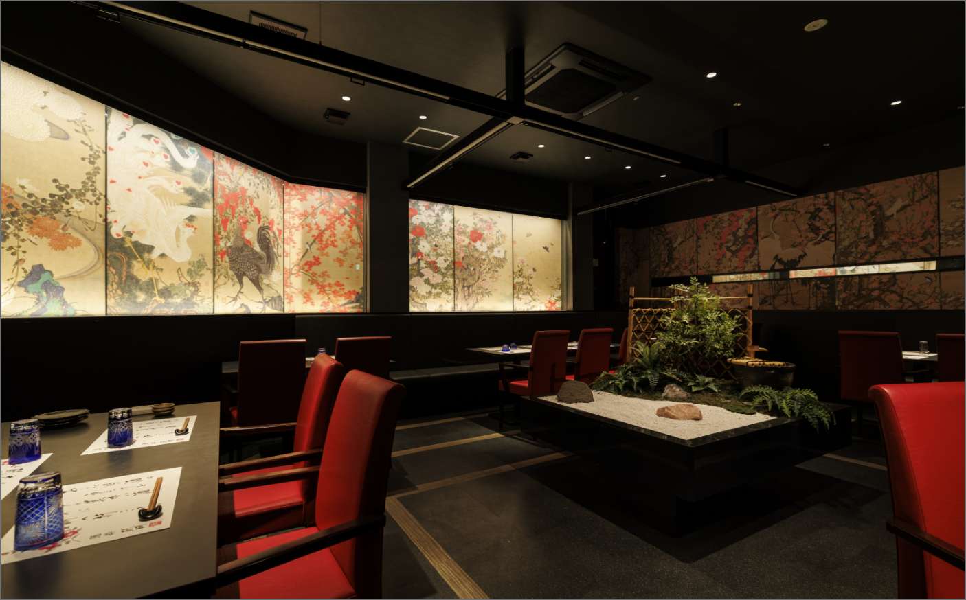最大30名までご利用いただける2階には、黒と赤のコントラストが美しい豪華絢爛な大部屋を完備。