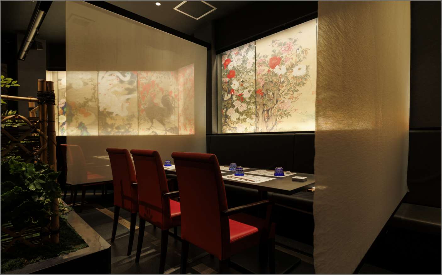 格子やパネルによる繊細な仕切りで、開放感を保ちながらも周囲を気にせず、大切な方との語らいをゆったり楽しめる空間です。